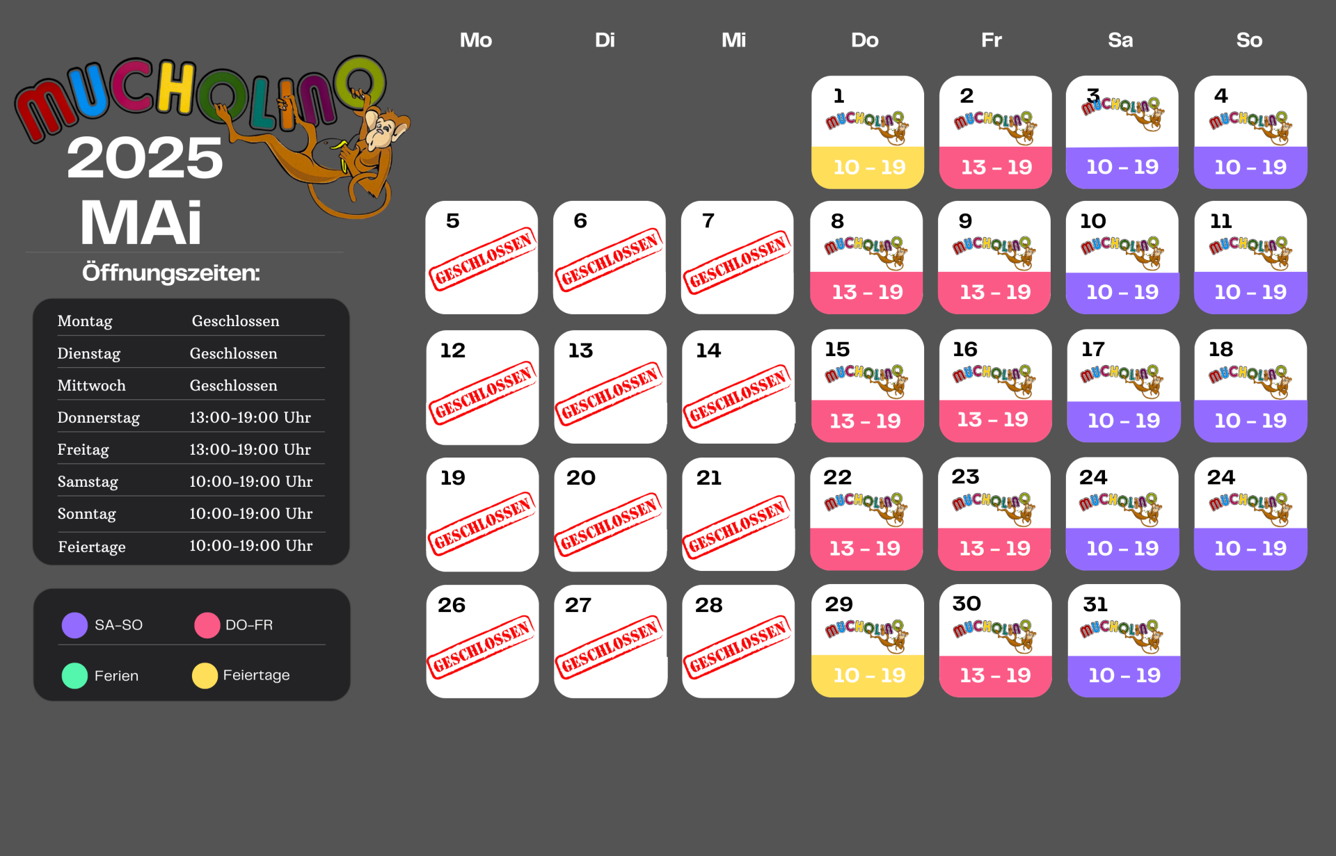 Öffnungszeiten Mai